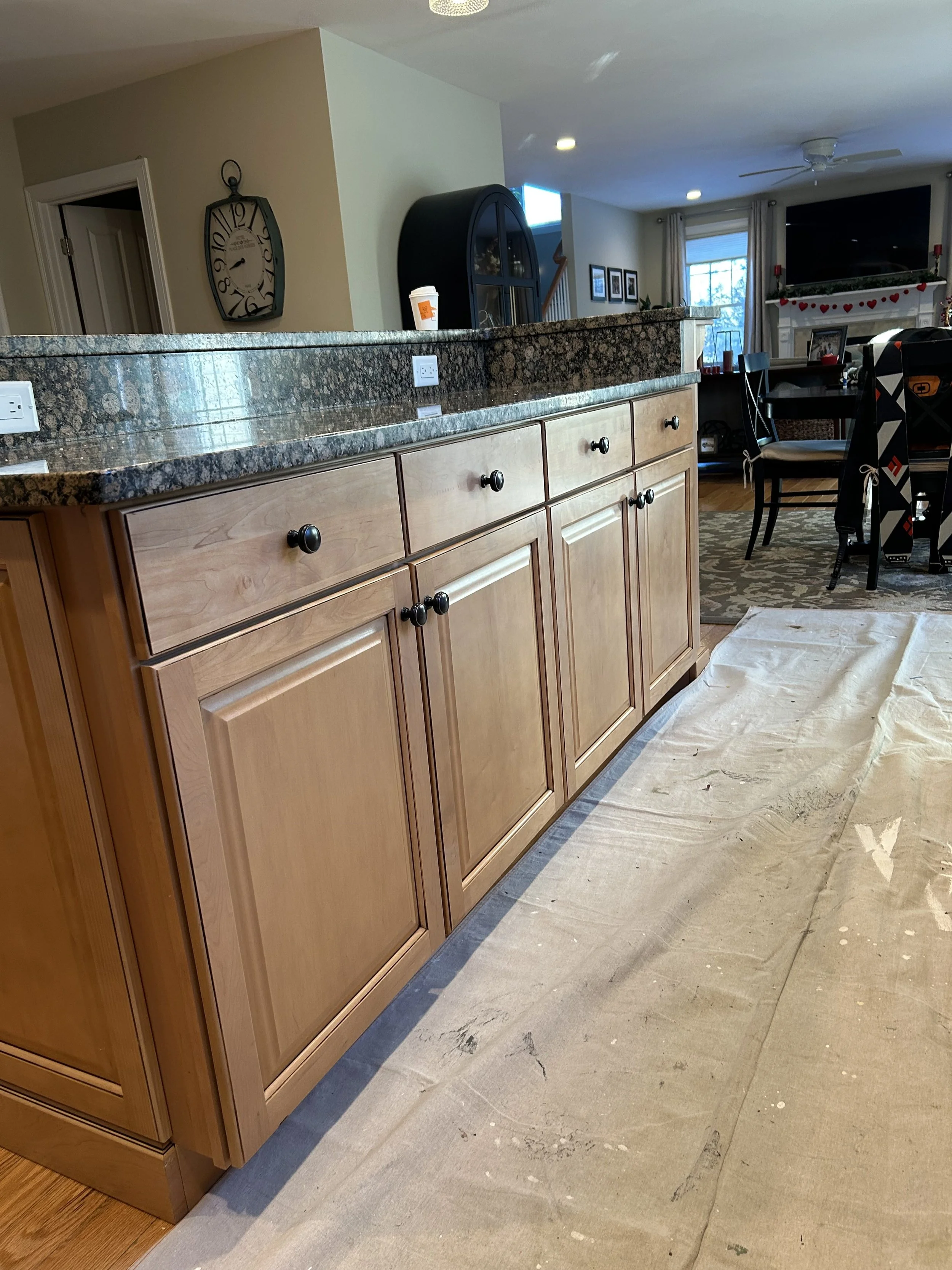 All doors and drawer faces were removed, and hardware was labeled to ensure everything went back exactly where it belonged—no guesswork later.Sanding & Surface Prep