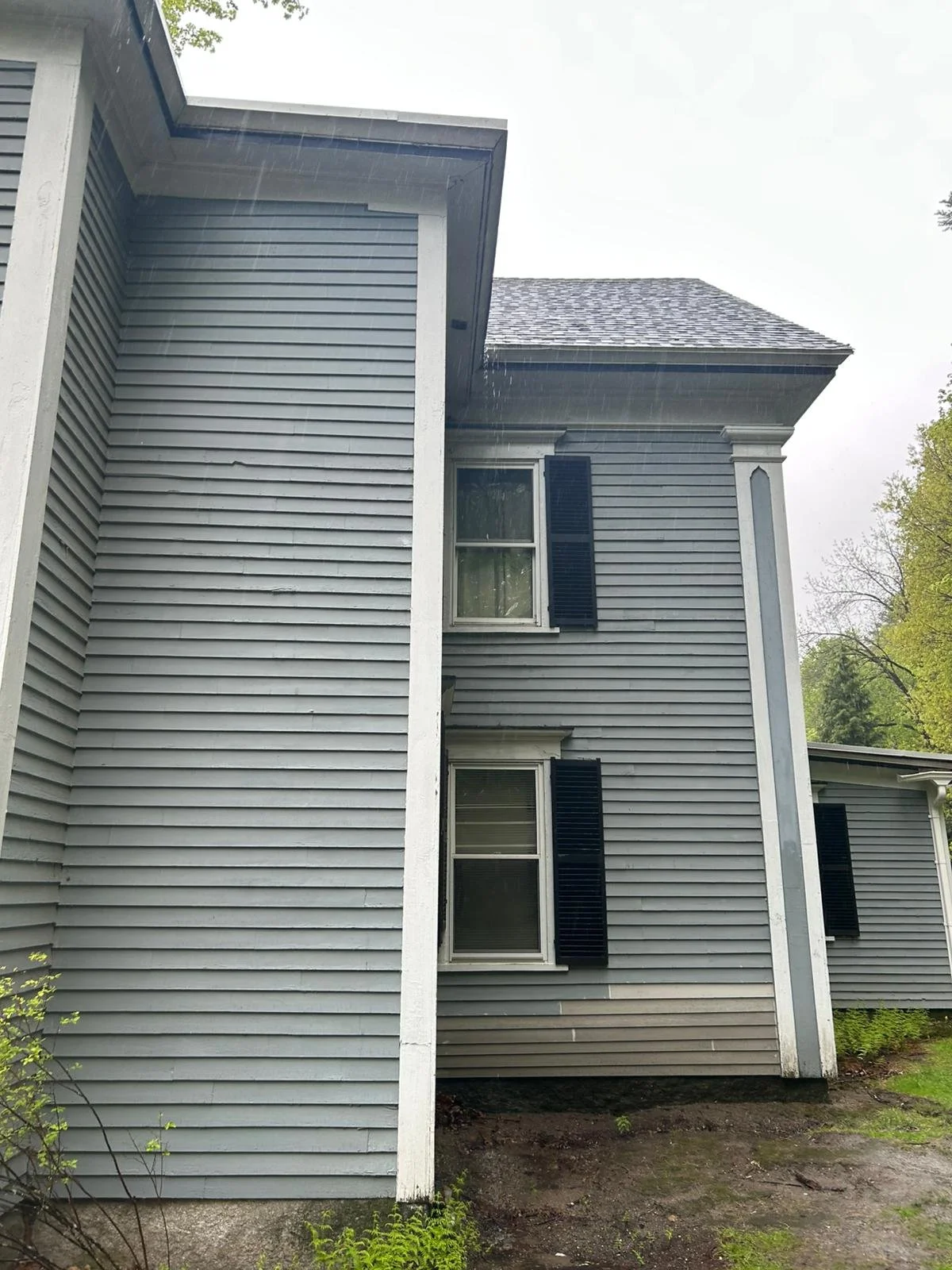 Scope: Full exterior wash, siding repairs, shutter removal/clean, comprehensive prep, and two-coat finish