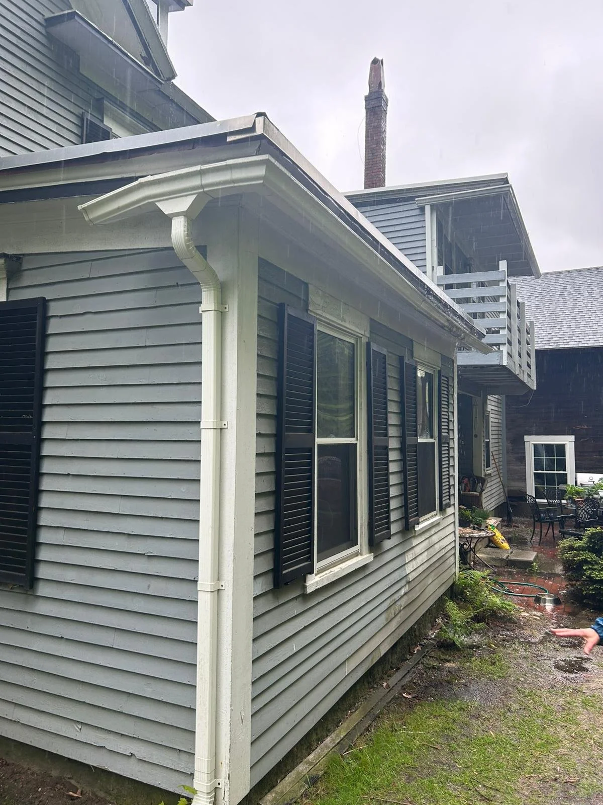 This Wilton home was a large-scale exterior refresh that demanded thorough prep and coordination. Years of New England weather had taken a toll—rotted siding in spots, tired paint on trim, and shutters that needed attention.