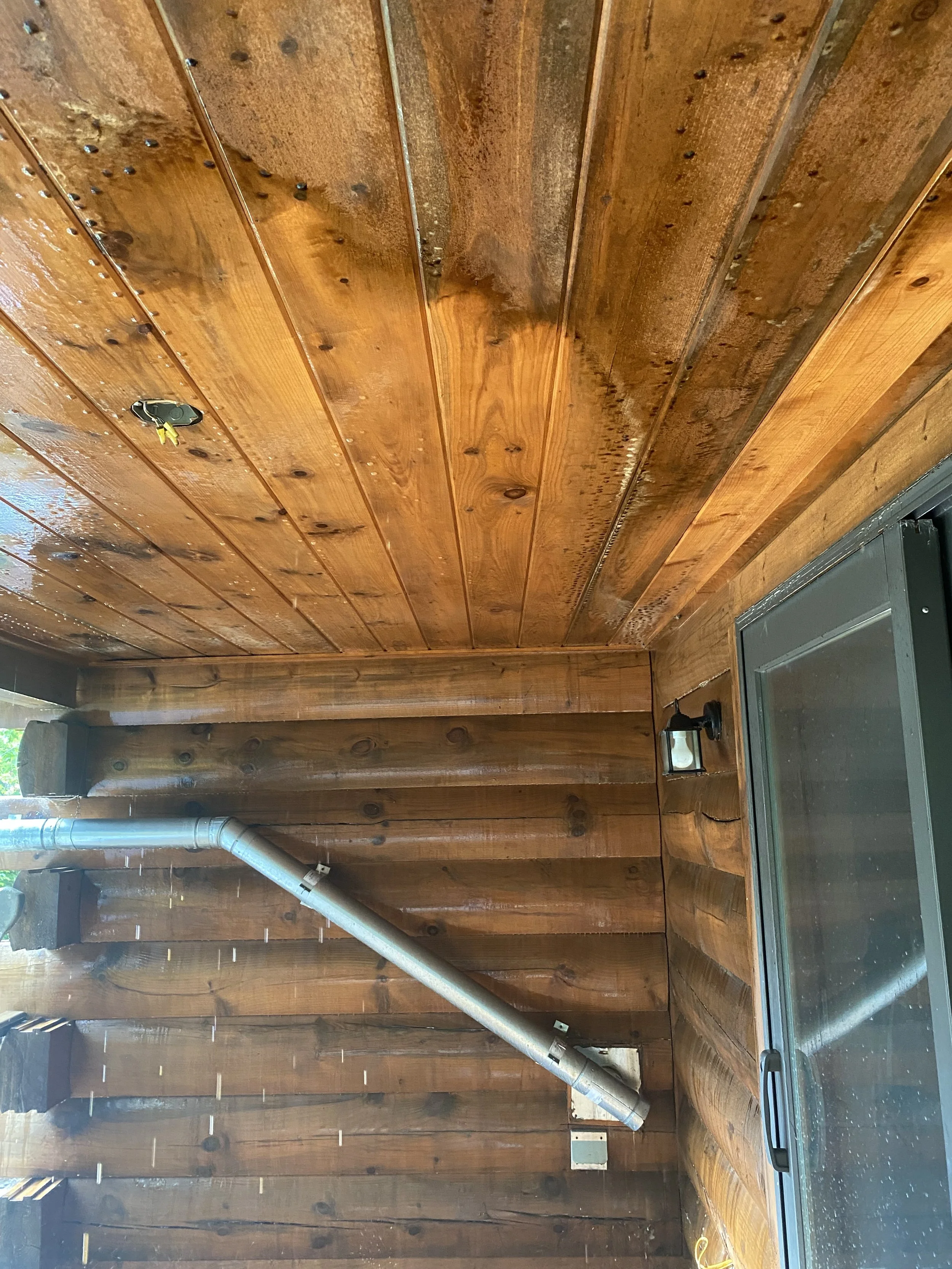The before photos show a home that had taken on the effects of time and exposure. Organic buildup, aged stain, and general wear had dulled the natural beauty of the wood. This wasn’t a simple repaint—this was a restoration that needed to be done the right way.